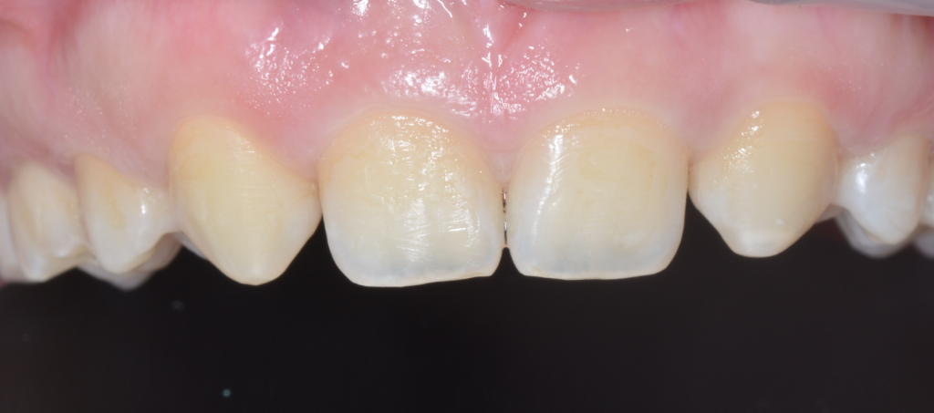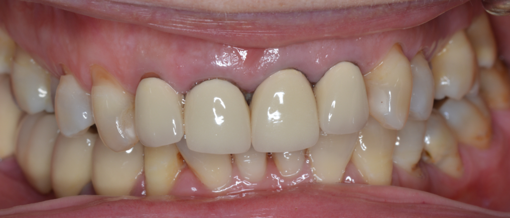 position of the gums in relation to the teeth. The gums in this case cover the crown