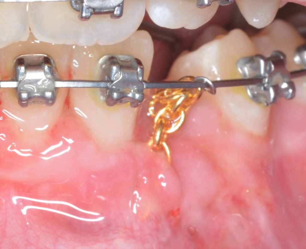These teeth can be moved orthodontically in order to appear in the mouth, however they require the cooperation of a periodontist with the orthodontist who is treating the patient. In these cases, the periodontist creates a flap with the gums and removes the bone that is over the impacted tooth in order for the orthodontist to attach an orthodontic device with which he will gradually "pull" the tooth into the mouth. This is followed by suturing of the gums in a way that facilitates rapid healing and aesthetics.